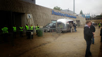 Die Szenerie beruhigte sich nun zunehmend und wir verlagerten uns nach draußen, doch die Heimkurve wurde hinter Rolltoren festgehalten und so konnten wir keine weiteren Vorfälle beobachten, da die Fantrennung hier besser funktionierte als im Stadion.